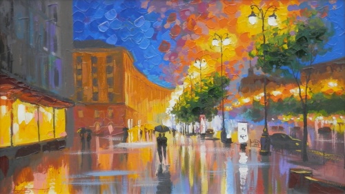 Крещатик в свете вечерних огней. Вечерний променад. Мастихин и буйство красок