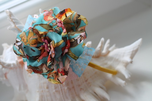 Цветок выполнен из атласной ткани с добавлением кружева
