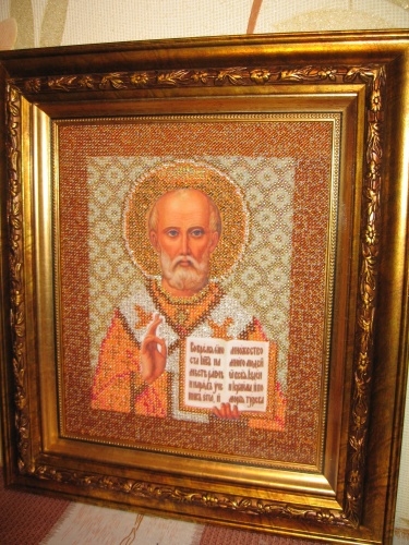 Икона вышитая на холсте чешским бисером