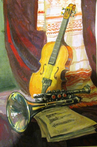 Поплотнее сделайте тень от скрипки.