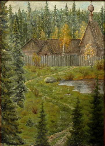 Вообще задумку вначале была - мрачная сырая темная тайга, дождливая осень , скит затерянный в мирах и времени , карканье воронья..А потом передумал и светлую атмосферу слепил...и не пожалел