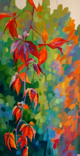 "Девушка, как виноград, перезреет - засохнет", но набираясь зрелости и красоты с возрастом, даже не дающий плодов винограда росток, становится сияюще красивым. Автор использует сочные краски.