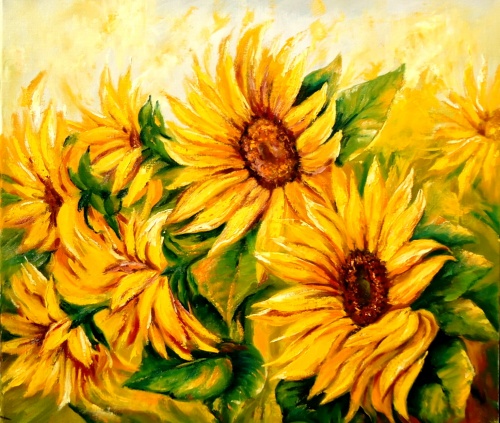 Красота! Все-таки подсолнухов много не бывает. Уж сколько работ с ними, а все разные и каждая по своему хороша.