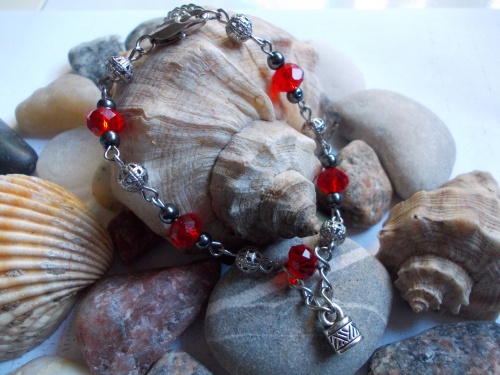 Браслет из бусин венецианского стекла, гематита, металлических бусин и подвески
