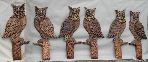 Резные совы для оформления столбов домовых ворот, калитки и угловых столбов забора