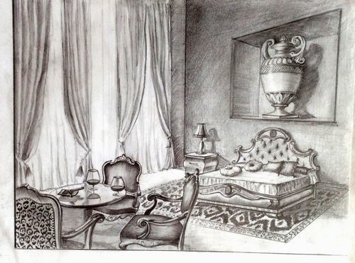 "интерьер карандаш набросок"