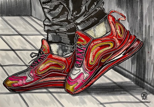 "Красные кроссовки. Скетч. "